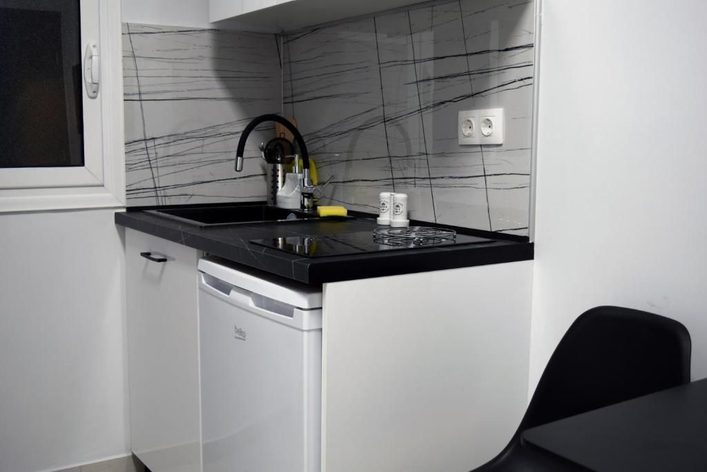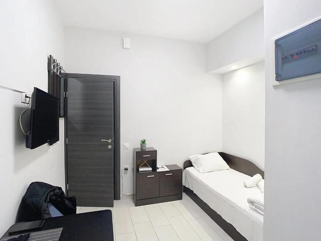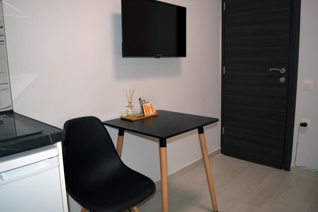 Αποτελείται απο μονό κρεβάτι (που μπορεί να αντικατασταθεί με διπλό) κουζίνα και μπάνιο, έχει παράθυρο και στην κουζίνα αλλά και στο μπάνιο.